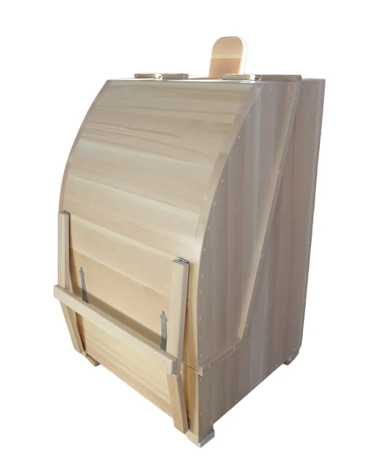 Квадратная двухрежимная фитобочка из кедра может быть использована как инфракрасная сауна и парная. Карбоновые излучатели отвечают за сухое парение, они находятся на внутренней стороне дверцы и задней стенке фитобочки. Влажное парение происходит за счет поступления горячего пара в фитобочку через паропровод. Толщина стенок составляет 40-45 мм, что позволяет увеличить срок службы изделия. Откидная дверь бочки во время открывания фиксируется внешней подставкой - опорой, которая в закрытом состоянии складывается и не занимает лишнее пространство. Во время парения человек сидит внутри кедровой бочки, а голова находится снаружи. Благодаря этому исключается возможность перегрева. Встроенная ручка на двери делают эксплуатацию фитобочки более удобной.