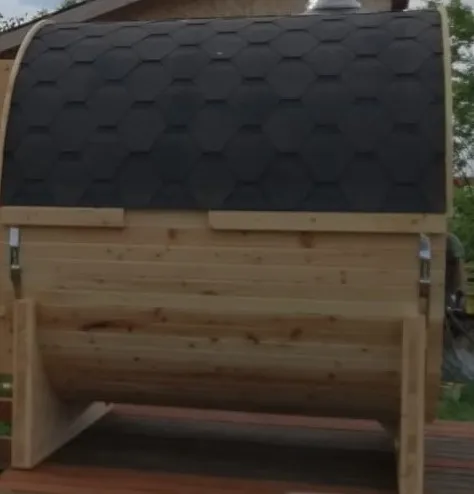 Много читал про такие бани-бочки, долго анализировал, в итоге пришел к мнению, что трехметровая баня-бочка-это оптимальное соотношение цены и качества, пространства. Кстати, в ней вполне хватает места даже для одновременного нахождения 3-4 человек, комфортнее, конечно, вдвоем)). Смотрится на участке красиво! Несколько раз протестировали баньку, остались очень довольными, а впереди целое лето...будем париться почти каждый день))