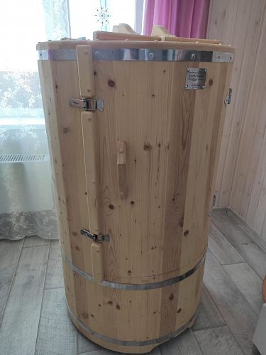 Что хочу сказать, пришла неделю назад ваша бочка, упакованная так плотно, что на её распаковку ушло прилично времени.. но это и понятно, живое дерево всё-таки легко повредить при перевозке. А еще через 20 минут она уже была подключена и готова к бою, хотя я и дилетант в этом деле. В принципе всё просто и понятно. А сама бочка по ощущению сделана на века, сразу понравилась жене. Теперь почти каждый день после работы в ней отдыхаем. Спасибо Вам от семьи Алёхиных, будем вас рекомендовать. Всем добра ^)|